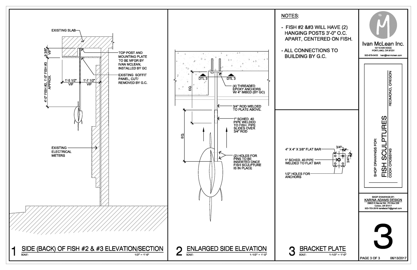 Ivan McLean is a professional large sculpture artist who works on private and public projects throughout the US.  He has an average of 10 large commissions per year along with many smaller projects.  Karina Adams Architecture collaborates with Ivan by providing professional presentations to help him compete in the public RFP process, and also creates technical drawings that are often needed for commercial projects. Karina also helps by providing laser, or other manufacturing files.  Karina met Ivan through mutual artist friends Rory and Eric Leonard.  Ivan McLean's Website.